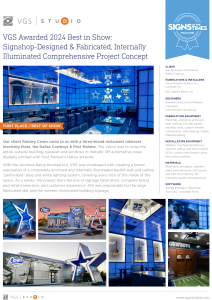 From full branding, customer journey communications, and storytelling to integrated visual elements (i.e. signage, graphics, visual merchandising, dimensional interior décor, custom displays), menu boards, stock displays, and even drive-thru systems, we are a true powerhouse of creativity and craftsmanship. VGS manufactures domestically, installing across the US and exporting internationally.